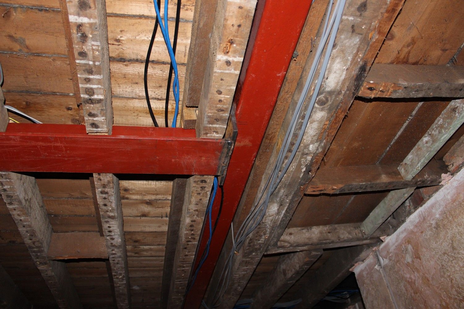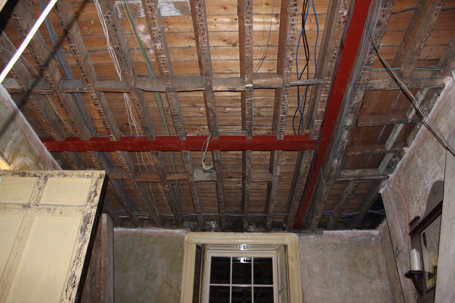 The floor above had to be reinforced before a new ceiling was put in, as the plaster would continue to crack unless properly addressed.