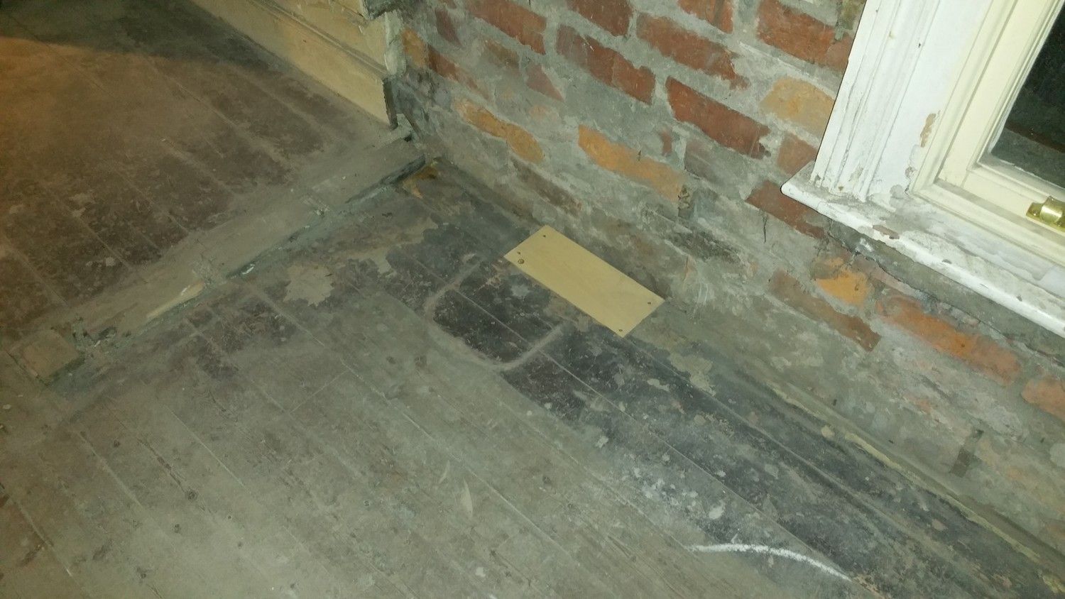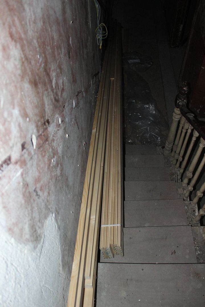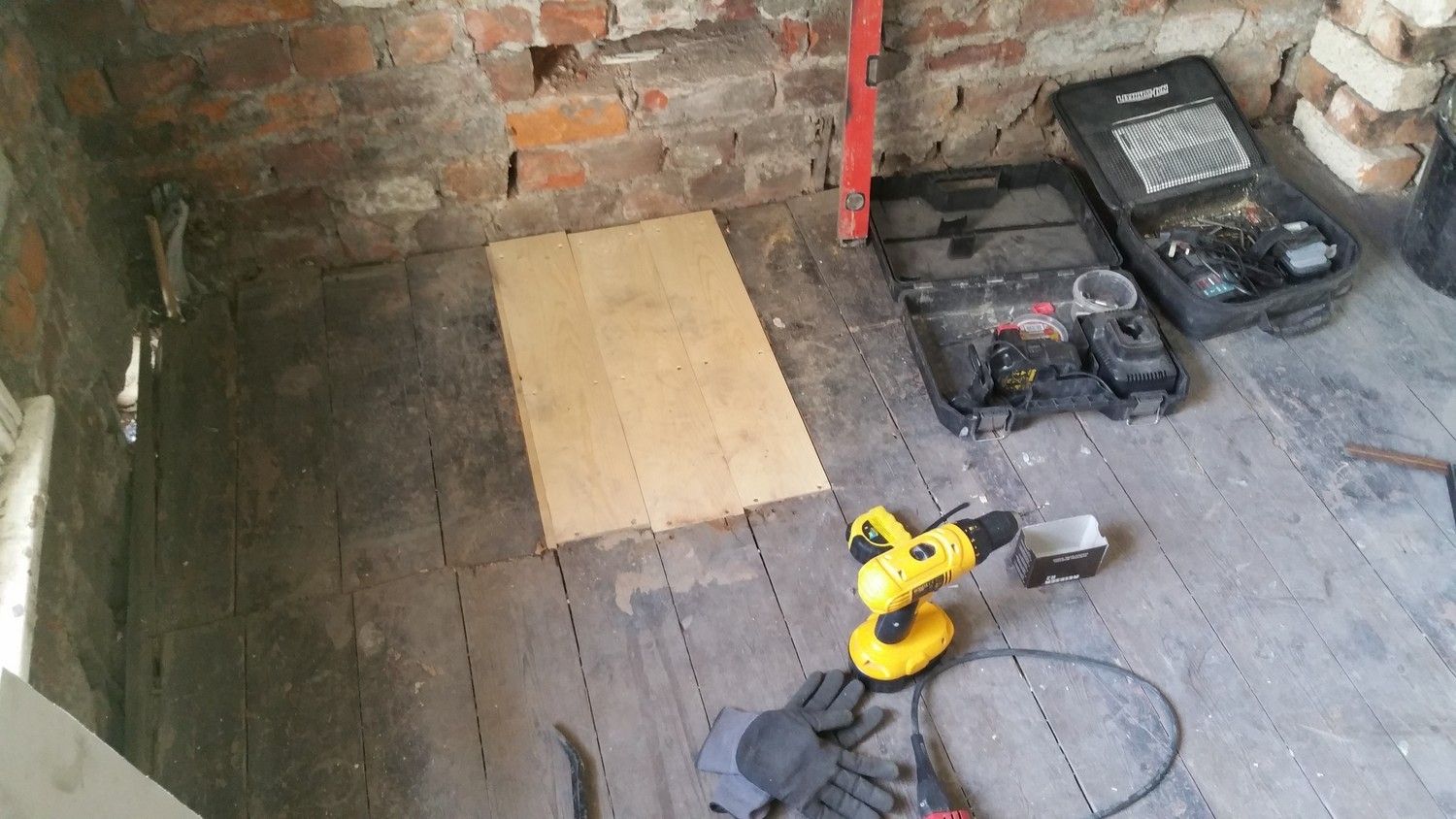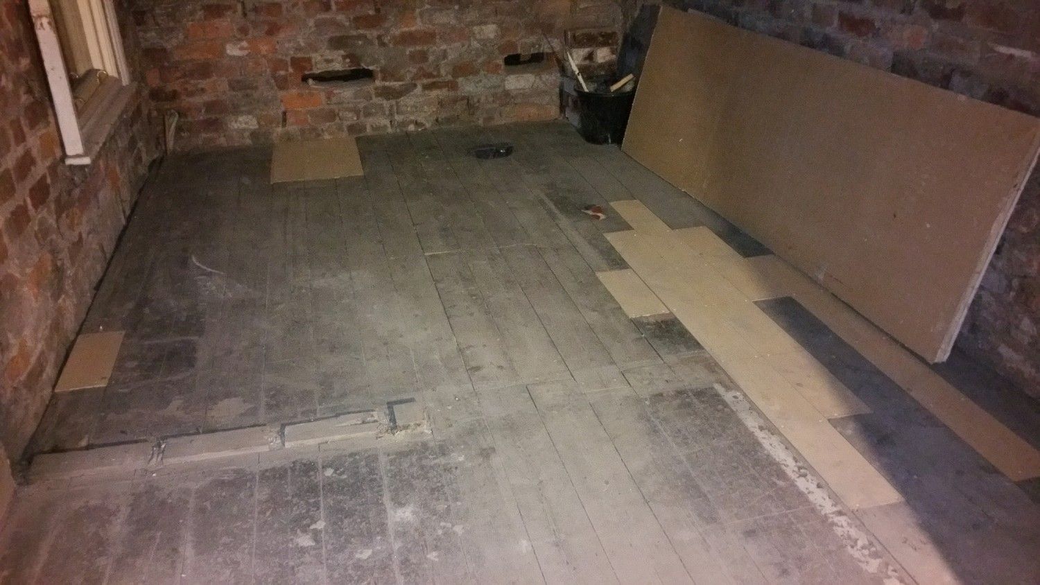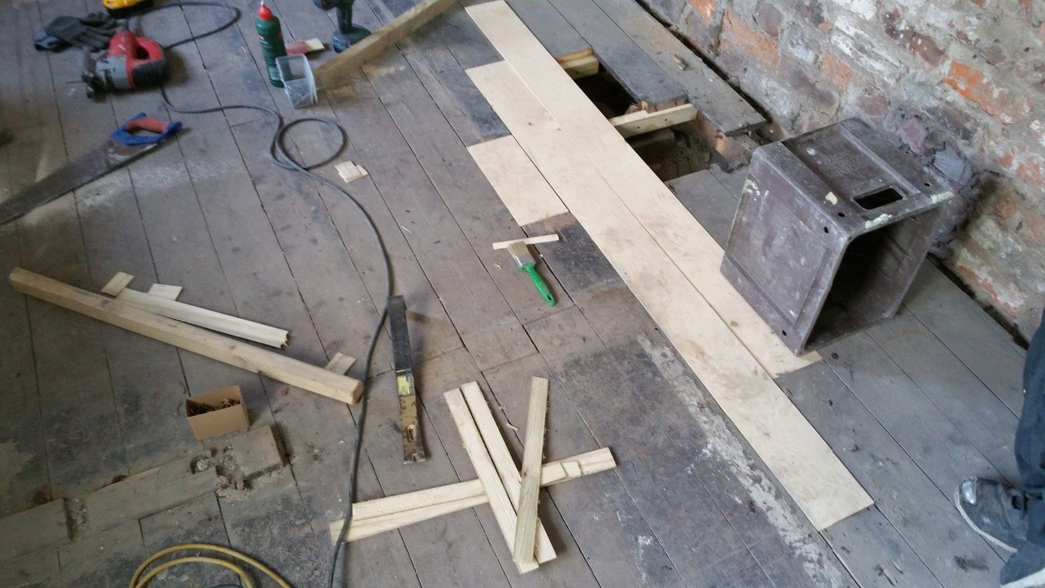 New floorboards arrived to replace damaged and missing boards from where pipework passed through to the ceiling below: