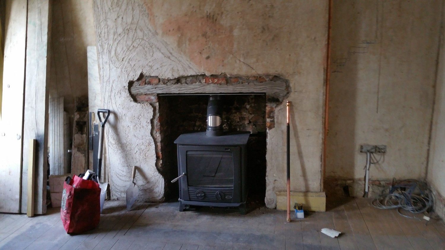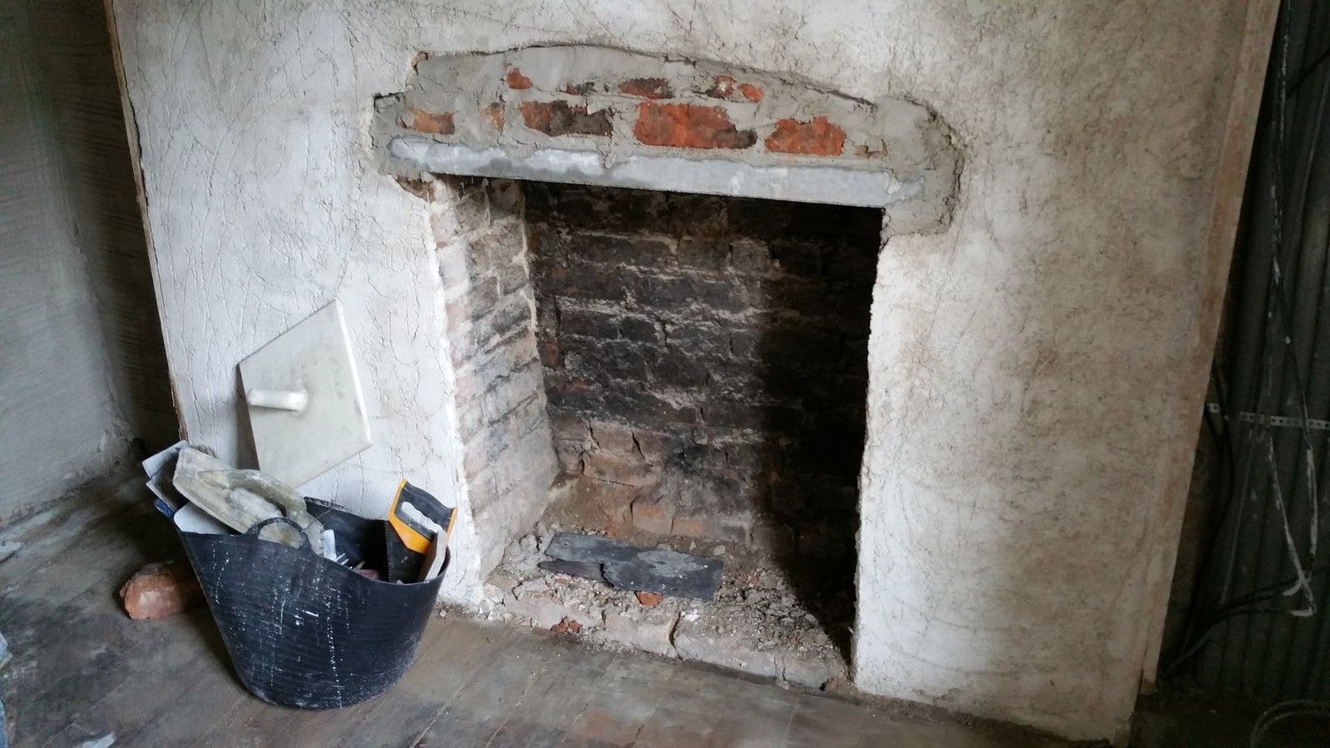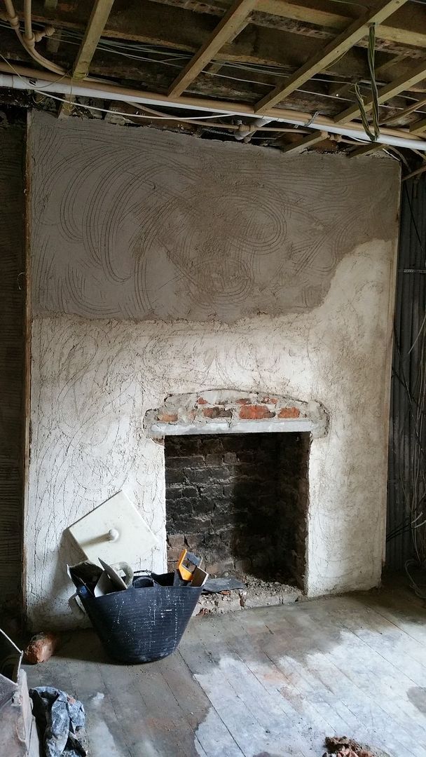 I never intended to have this as a working fireplace, but now that the scaffolding is in place outside, I've decided to line the flue anyway and at least have the option of using it in the future.