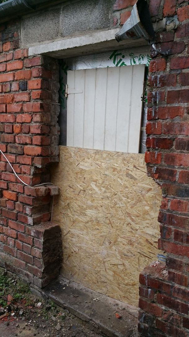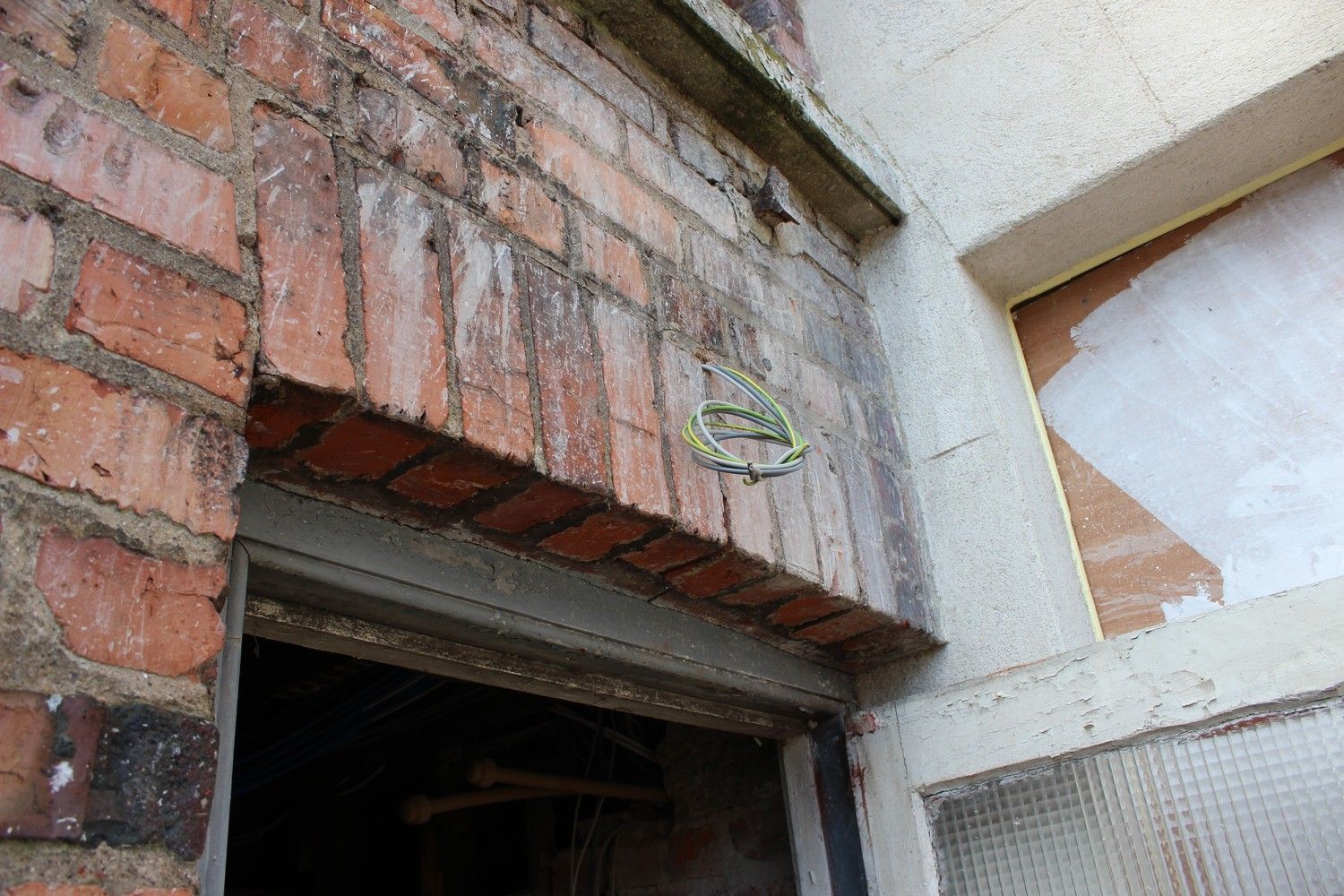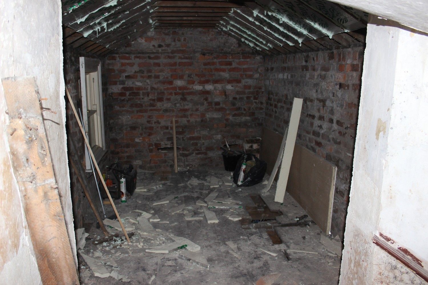 And finally onto the 1950-1960s extension; the opening below was a back door at some stage, but was filled in crudely with breeze blocks. These have since been removed and the opening will be built up again with salvaged brick. A new sash window matching the others will be built from scratch: