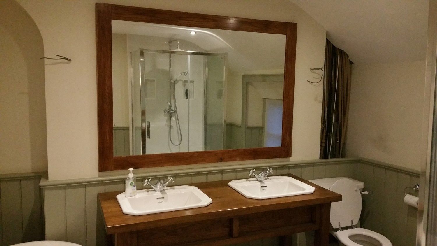 This was upstairs in the return before any works began, a small bathroom. All the wood was carefully removed, stripped, sanded and re-installed in the new bathroom upstairs in the main house: