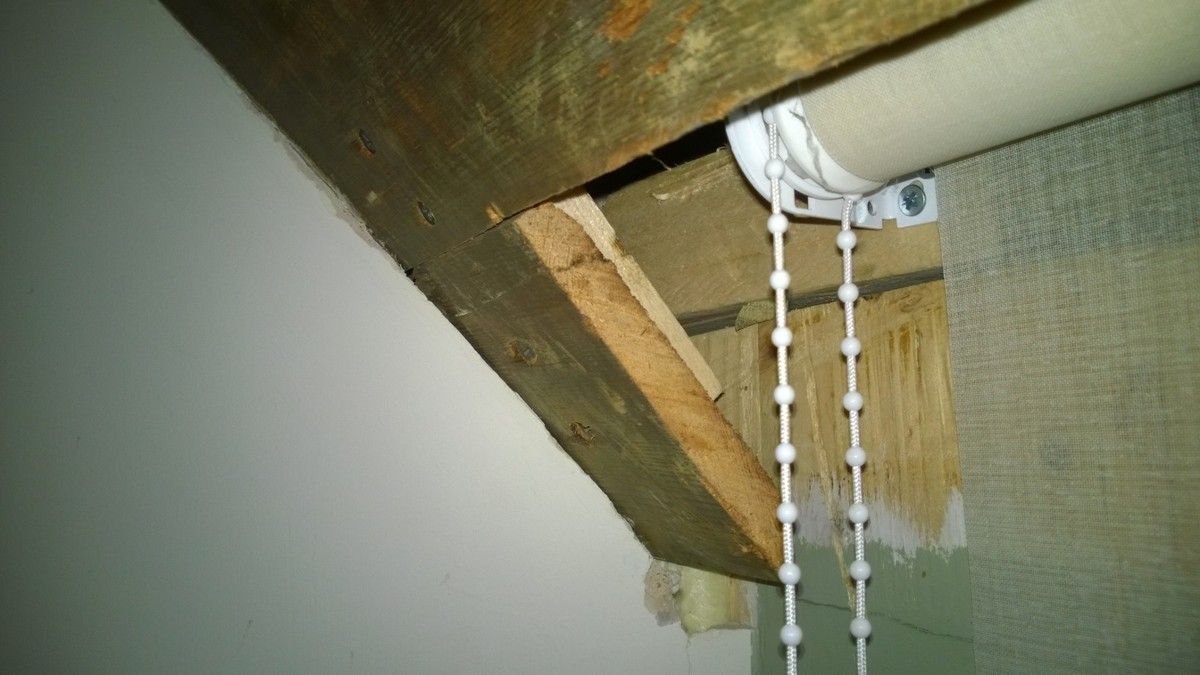 This is the upper window reveal as it stands. It's the original timber, but it has a large split across the middle of the section. It's behind this split that I wanted to hide the blind: