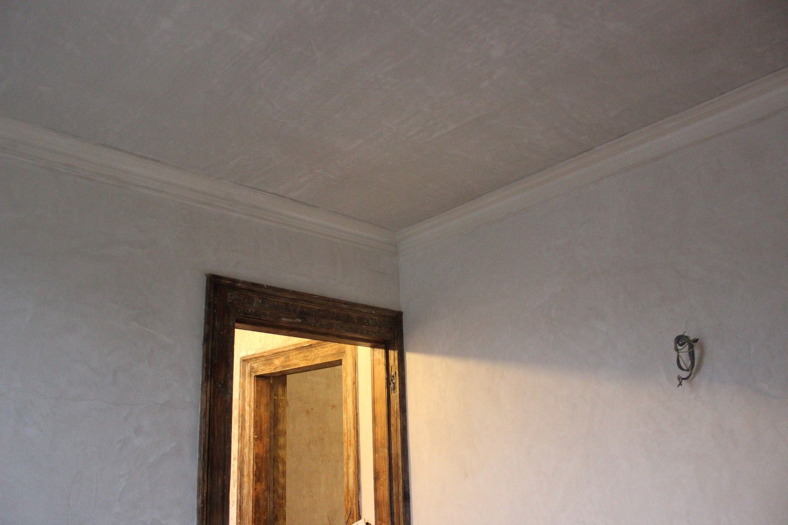 After I removed the inner porch door in the hallway which previous owners had installed, two large damaged sections of original cornice remained in the hallway. Micheal repaired these two damaged areas seamlessly: