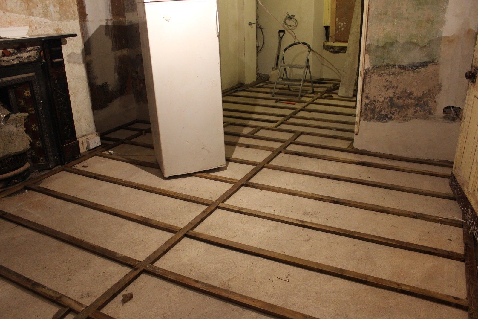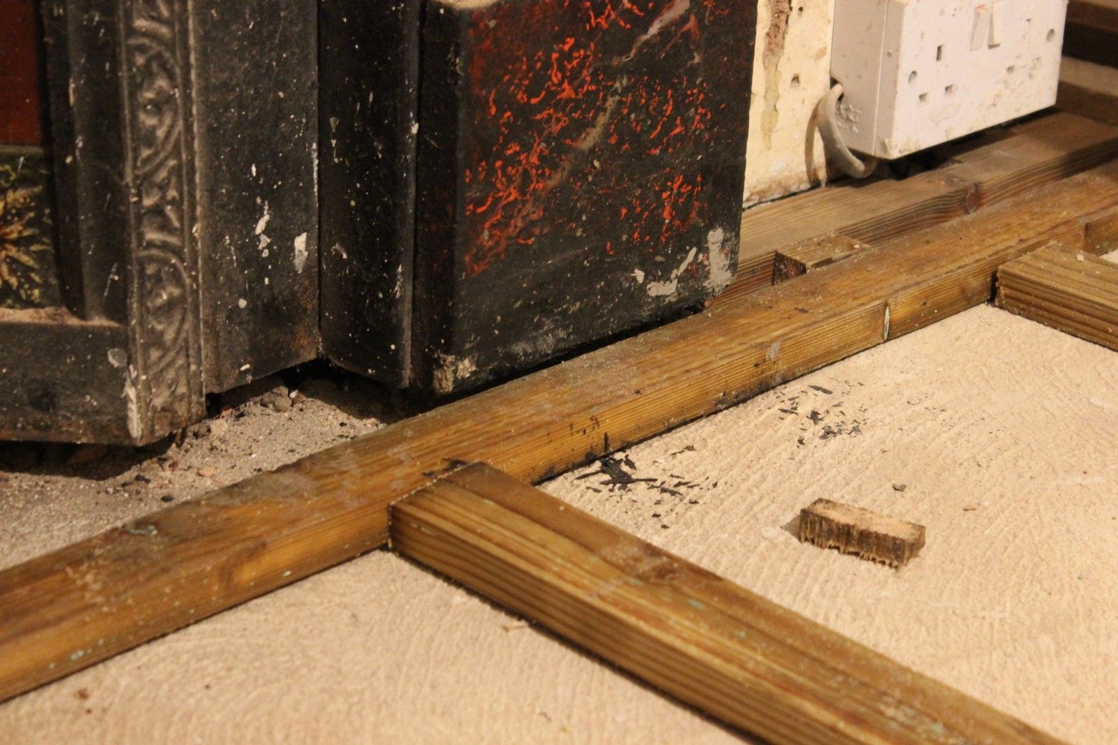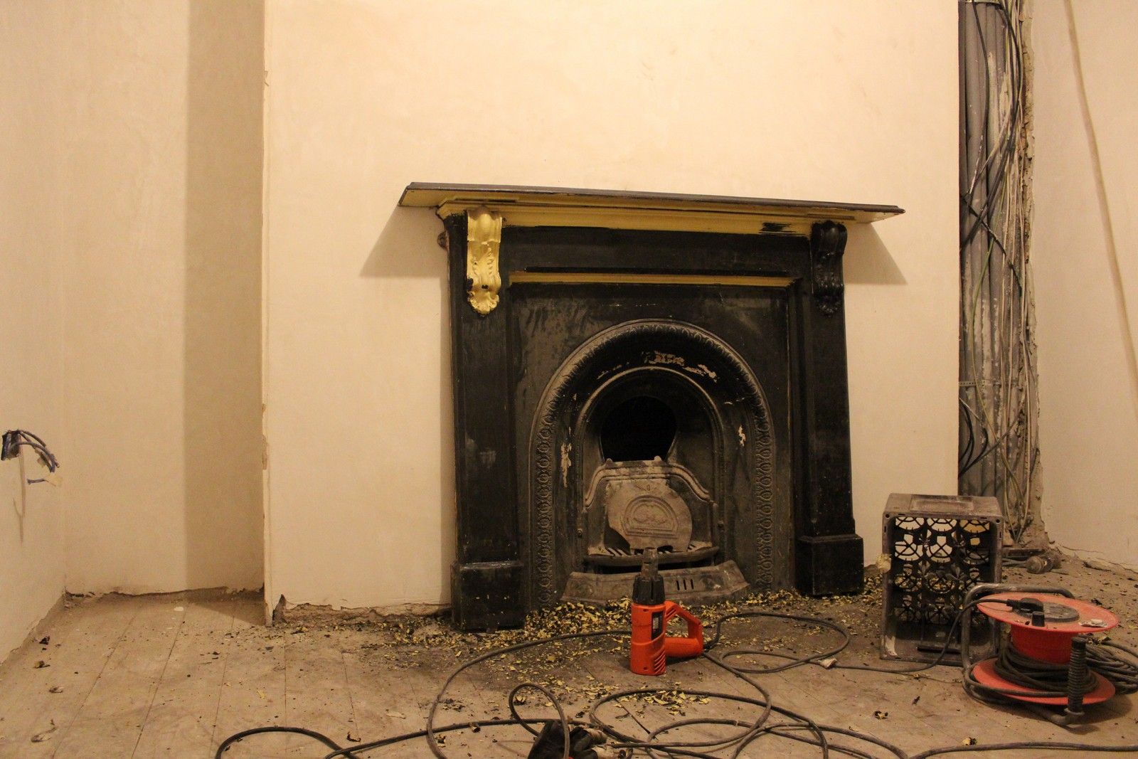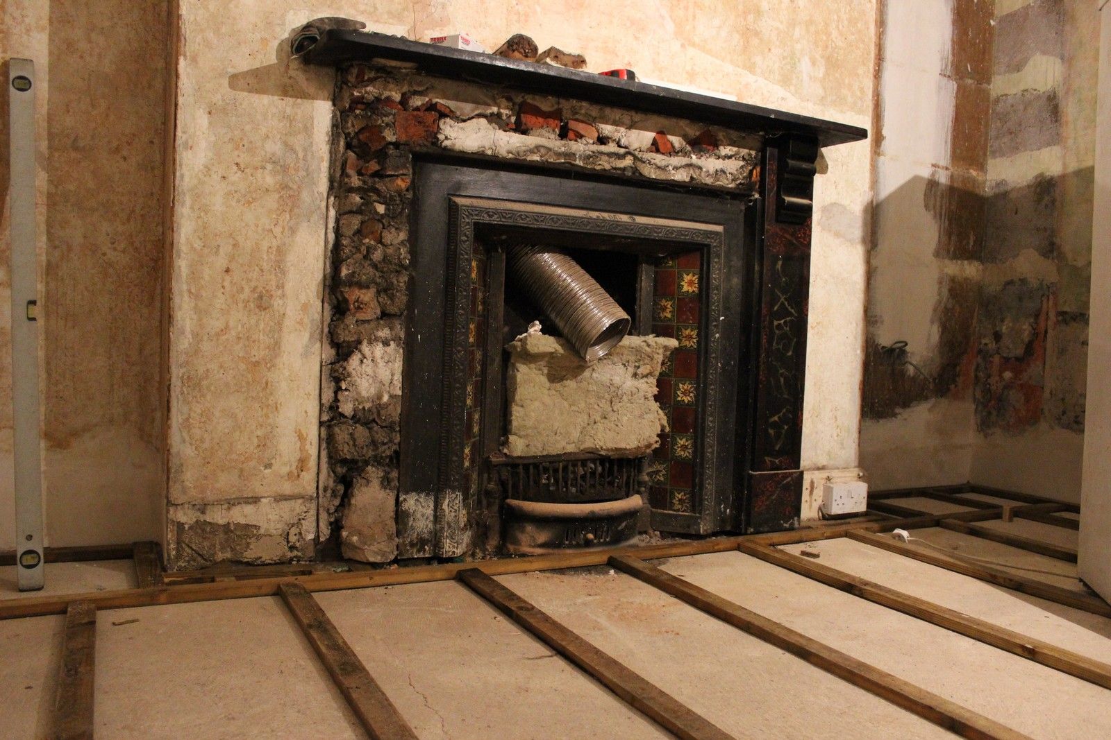 The final floor level will be approx 20mm higher than the original floorboards, so the fireplace may been to be re-positioned once the boards are laid.
