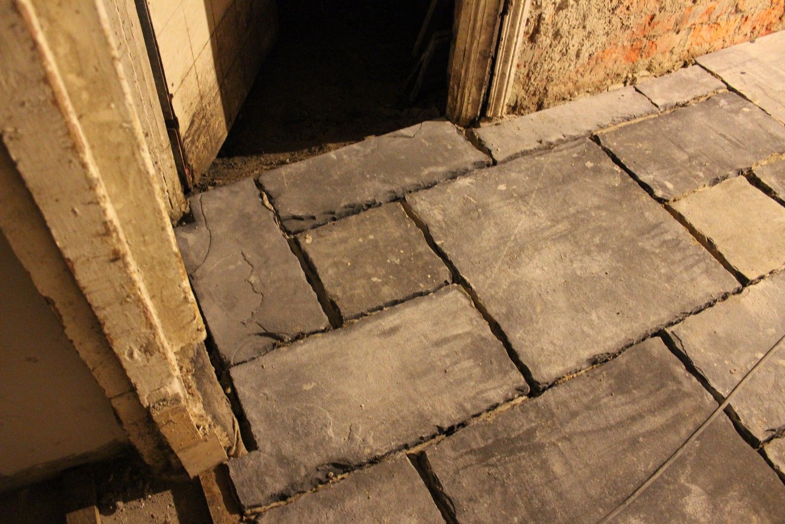 Moving through to the ground floor of the return, I wanted to do something a bit different with the floor surface. I decided upon laying black limestone slabs instead of floorboards in this area, as they should work very well with the underfloor heating, will be durable and easy to clean around the back door area and are something of a nod to the large limestone slabs often found in grander Georgian hallways.