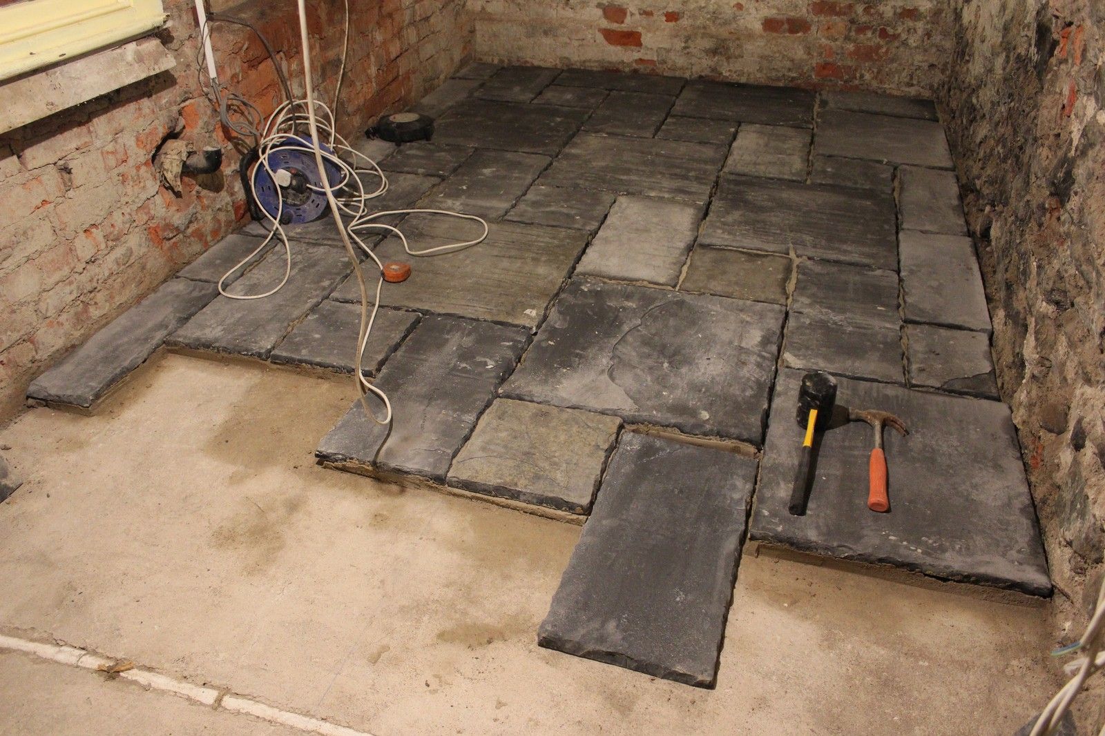 The pointing has yet to begin, but will be completed once the mortar below the slabs has hardened.