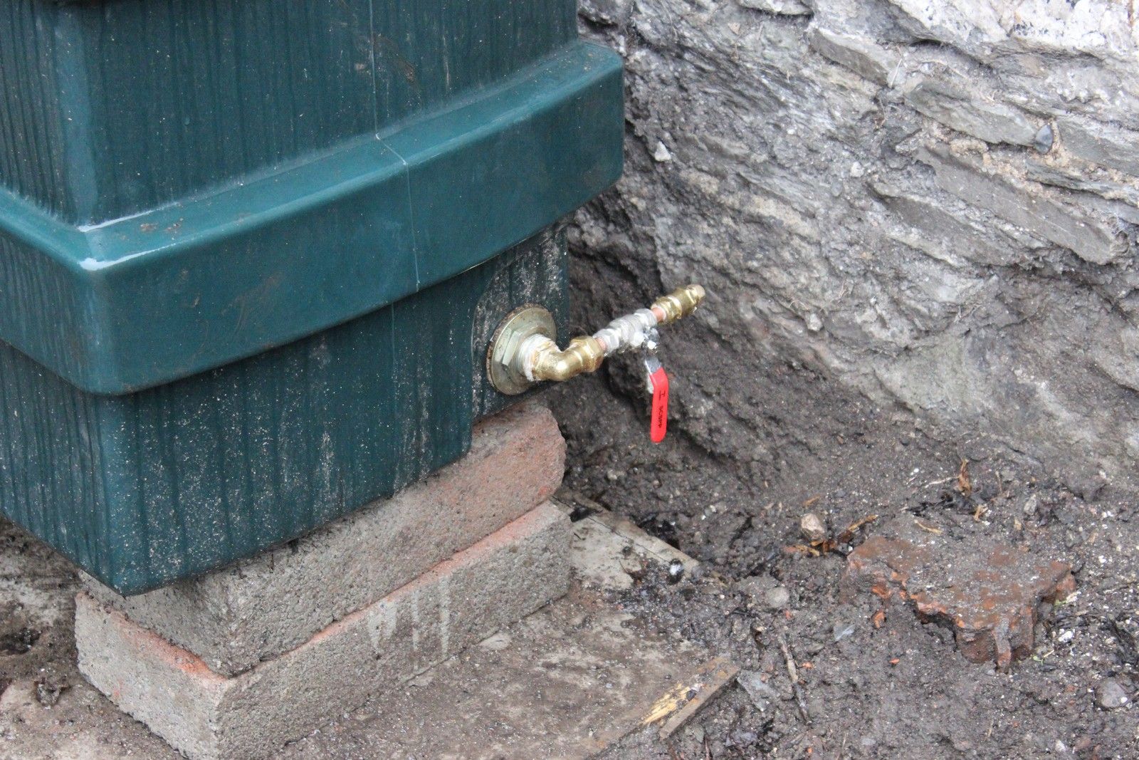I settled on a location for the tank and boiler in the back right corner of the garden and laid a foundation for each over two days: