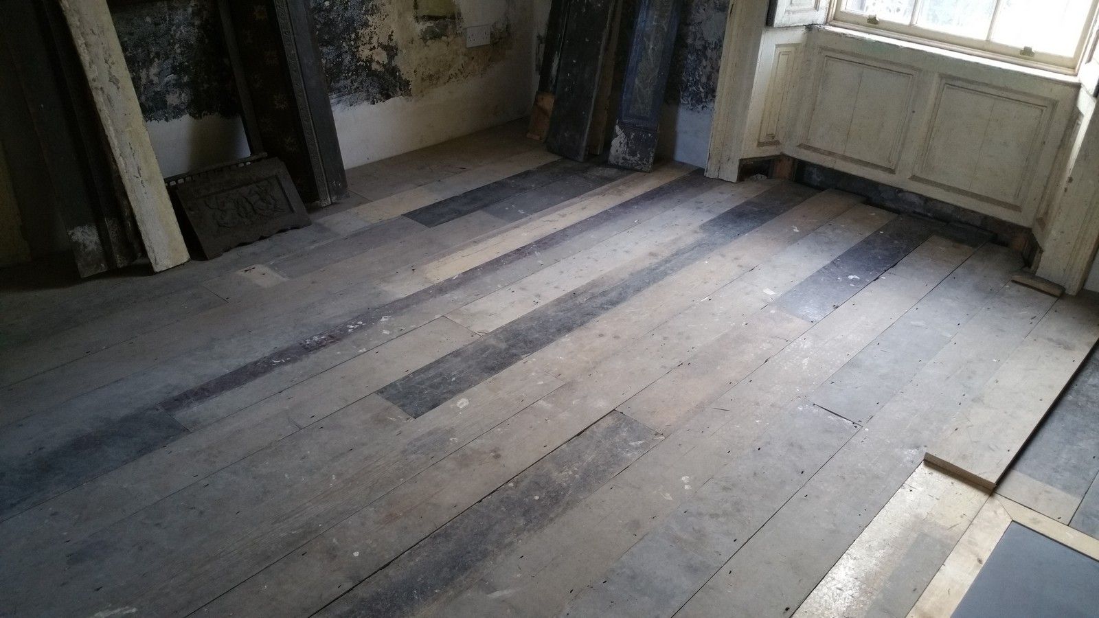 The remainder of the original wafer-thin, wider boards which we managed to salvage will be reused in the hallway.