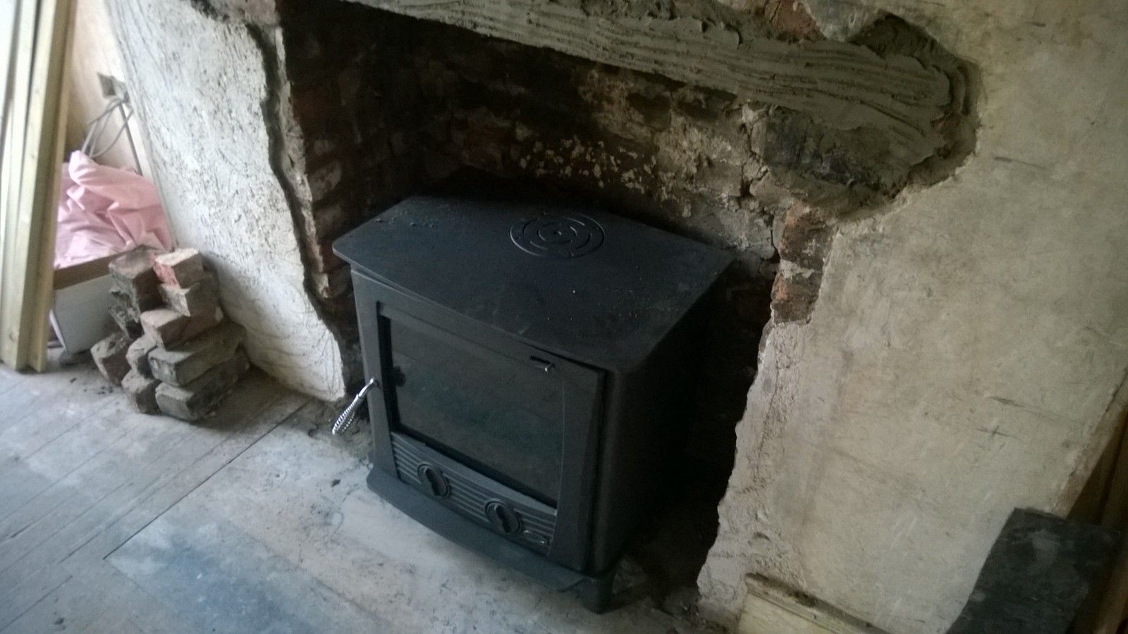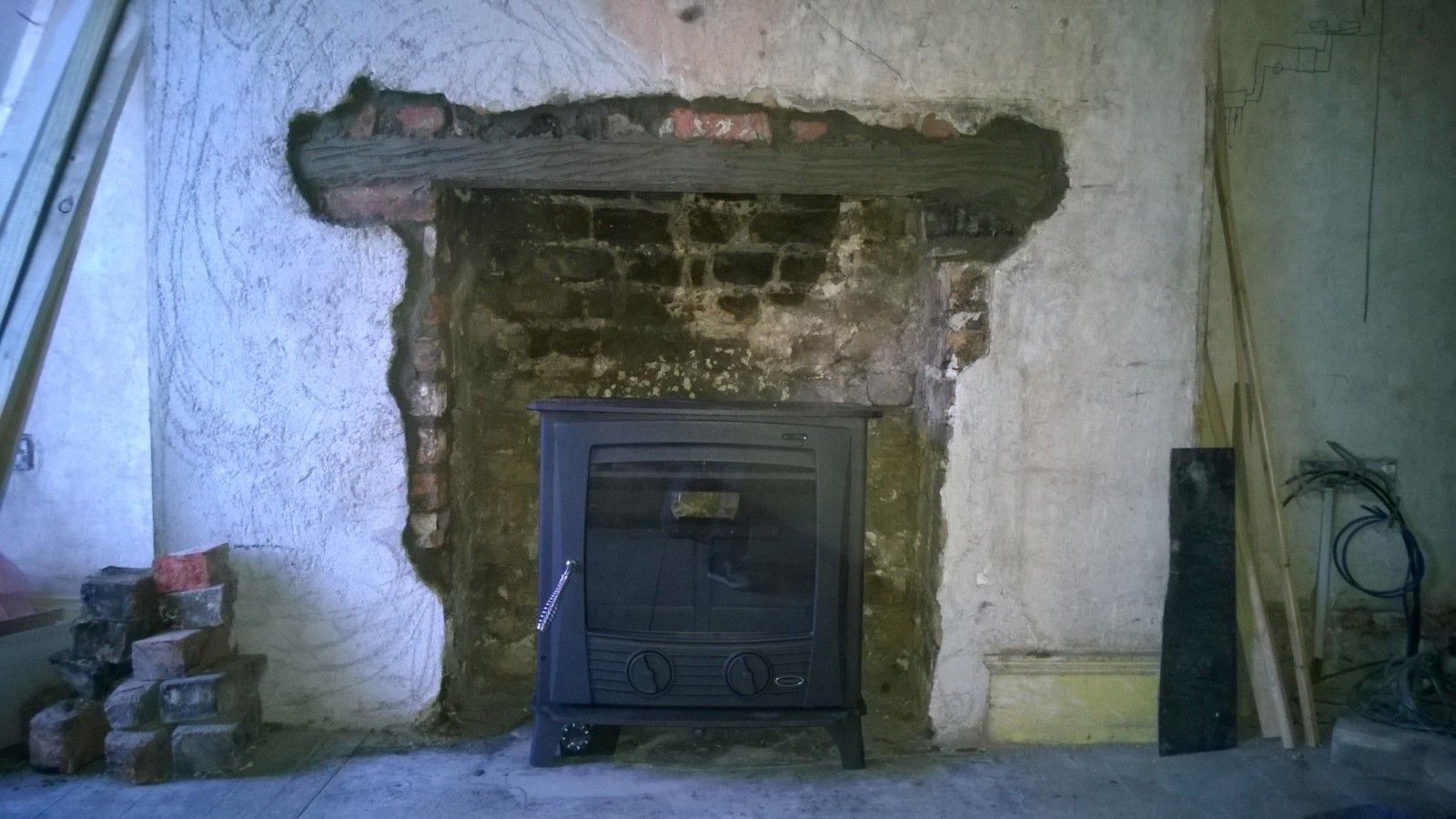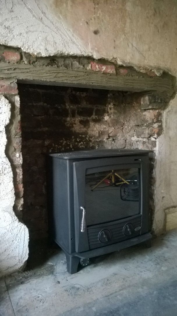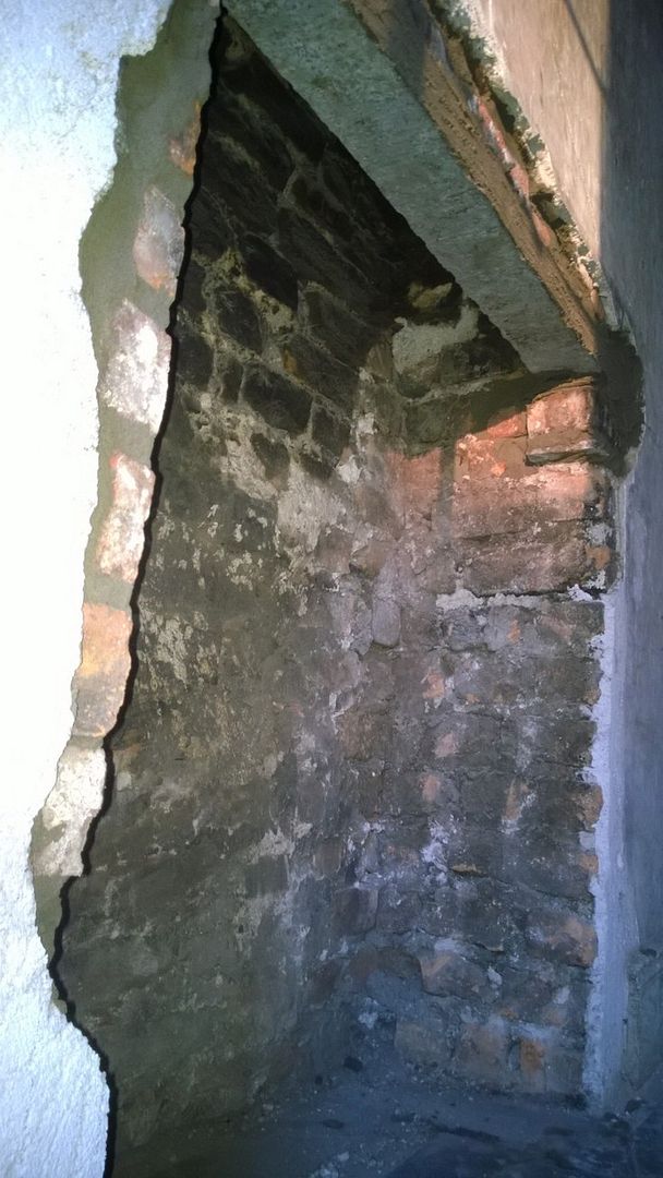 As you can see, the opening is tiny (approx 10" deep and about double that in width at its widest) and is of little use in it's current form. The plan was to widen the opening considerably so a solid fuel burning stove can be inserted, which will heat both the living room and provide heating to the water in the 200l thermal stove, located in the attic space.