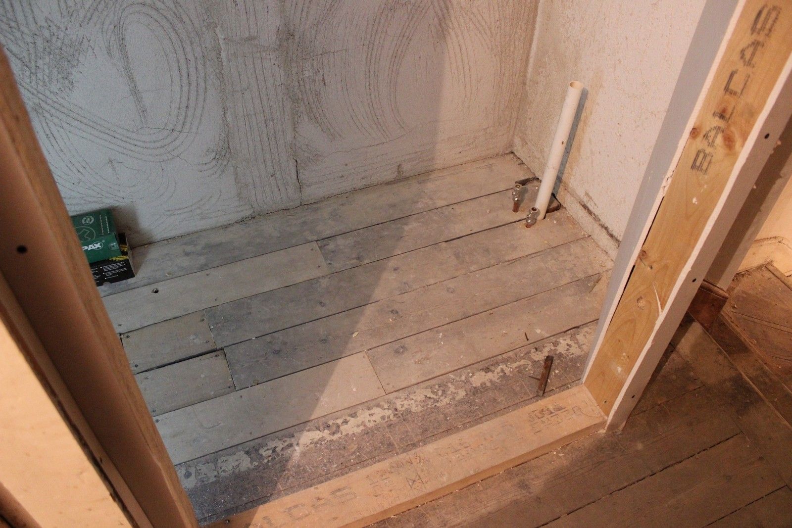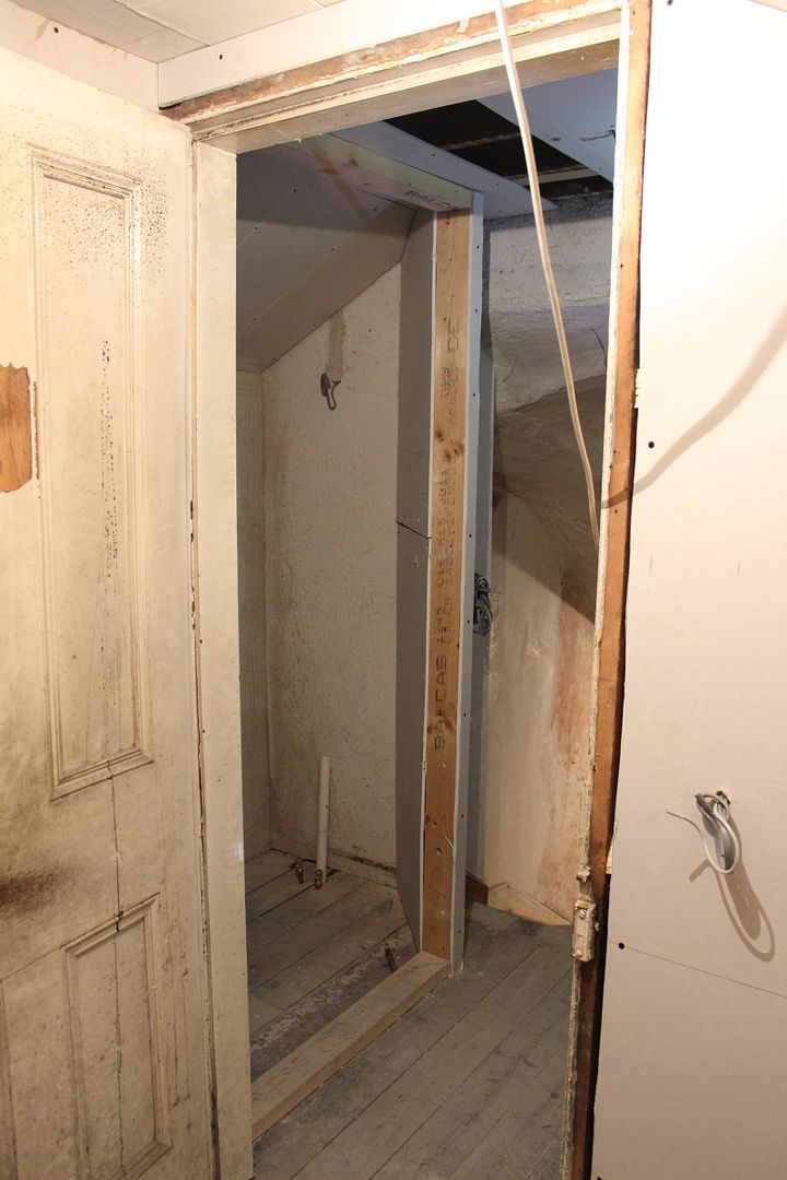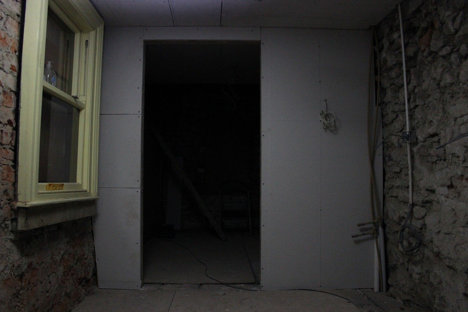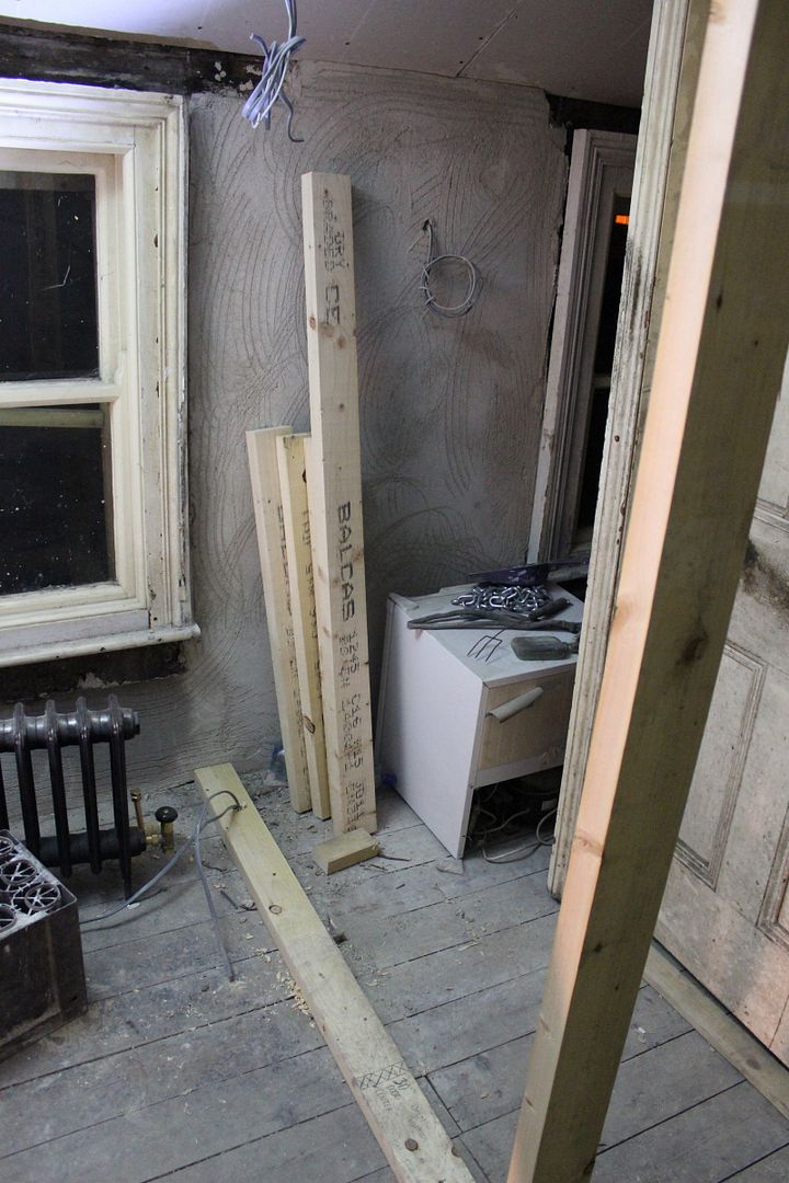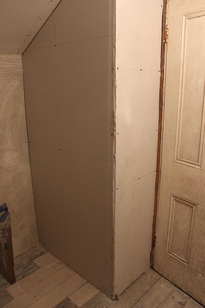 The original door below has been brought out of storage and positioned back where it once stood, albeit a few inches to the left. The small room behind the door was originally a bathroom and will now become a forth bedroom. About 20cm of landing space has been lost to the new small bathroom, however it makes for a decent sized bathroom space: