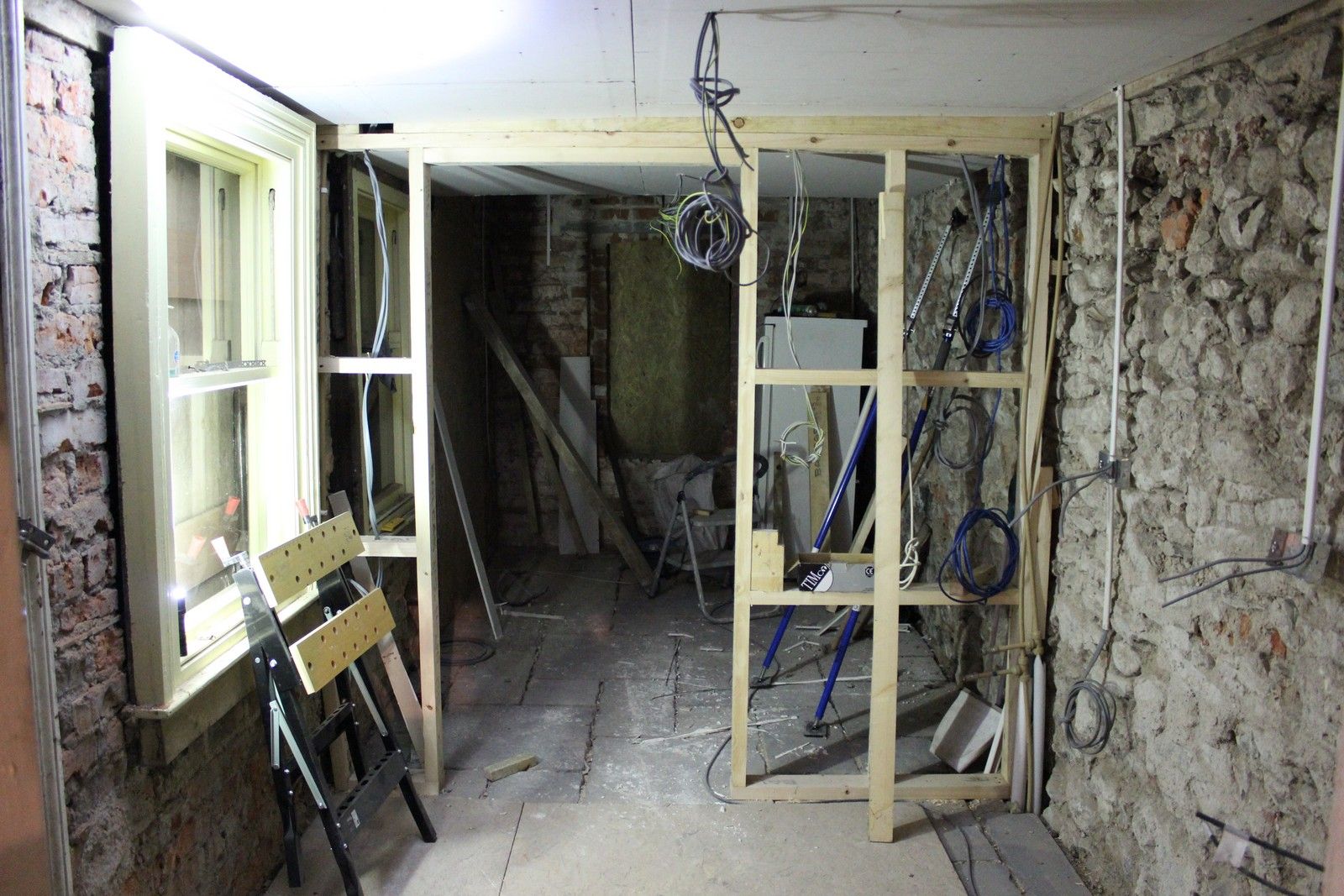My two brand new sash windows for downstairs in the return, supplementing the originals, built by Paul Dowdall of Dowdall Joinery. Made to match the originals in every way, down to the profile of the sash horns. To be installed within the next fortnight:
